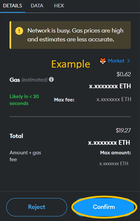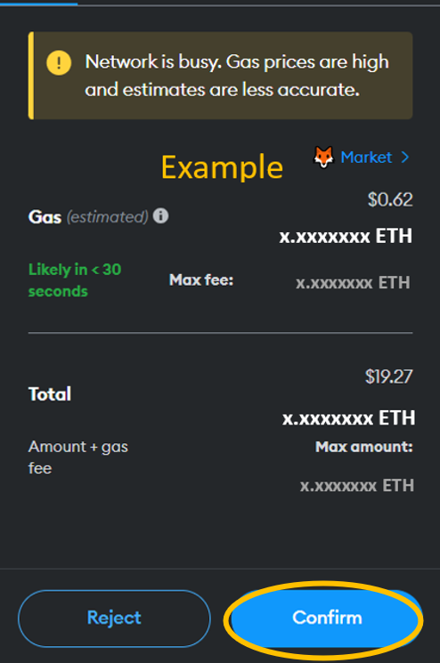 Pay the Required Fee: Ensure you have sufficient ETH for the transaction and gas fees in your connected wallet to cover this fee. After you review it, click the “Confirm” button.